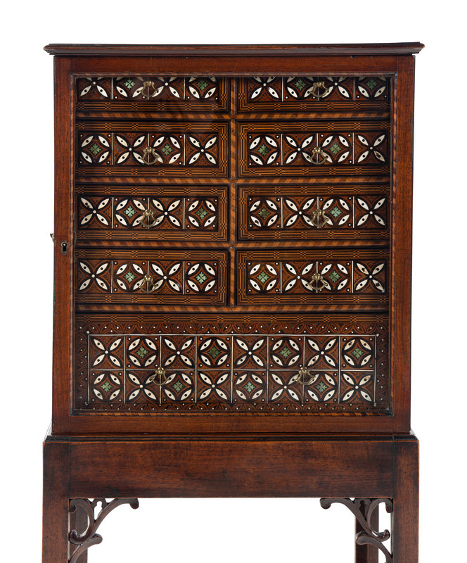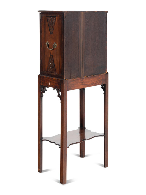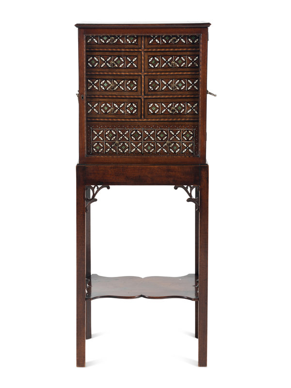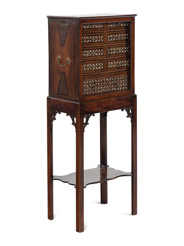 An English Various Woods and Ivory-Inlaid Collector's Case on Stand