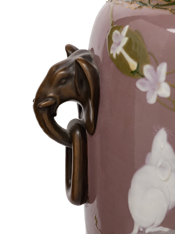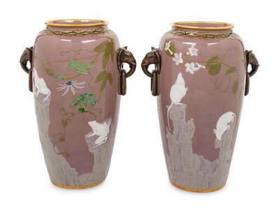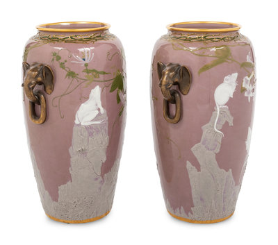 A Pair of Mintons Pate-sur-Pate Elephant Handle Urns