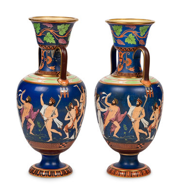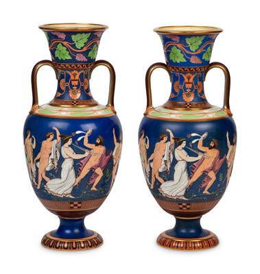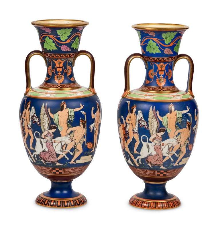 each marked for Samuel Alcock and further stamped Fac-Simile of an Antique Vase in the Colle of M. Le Conte de Lamberg / A Sacrifice at Delphos.