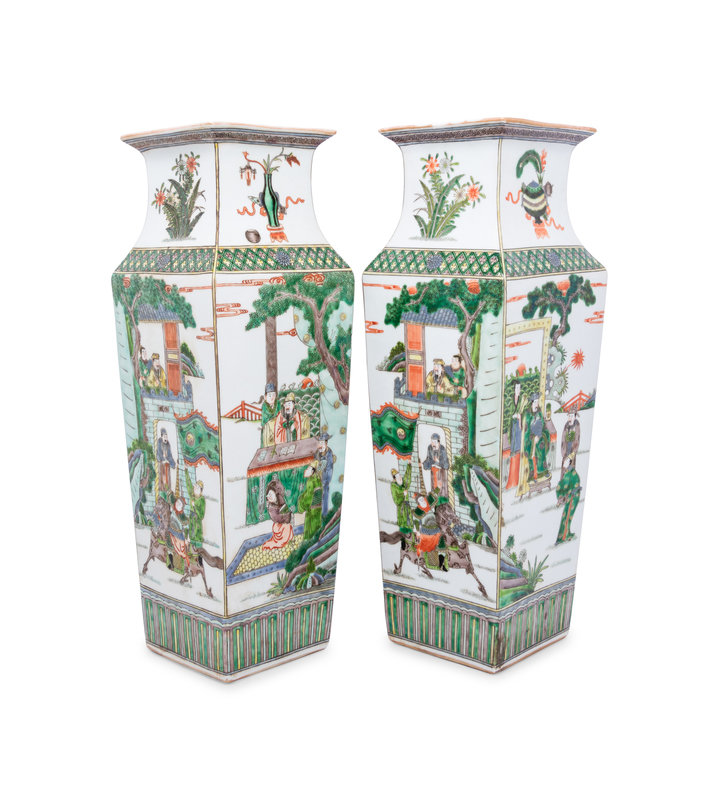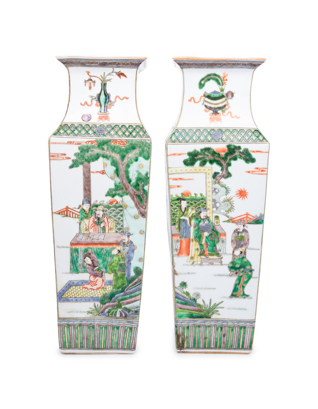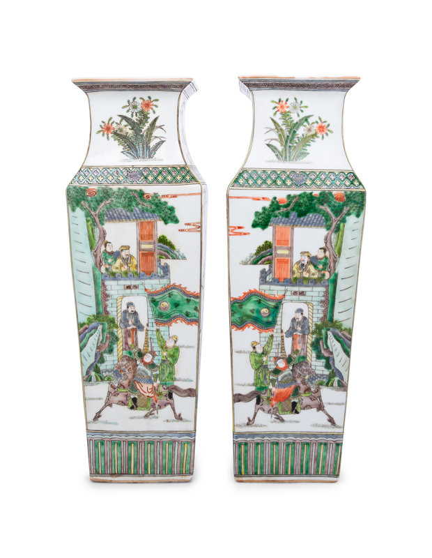 A Pair of Chinese Export 'Famille Verte' Porcelain Vases