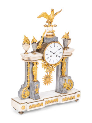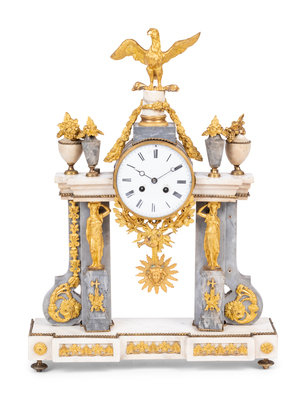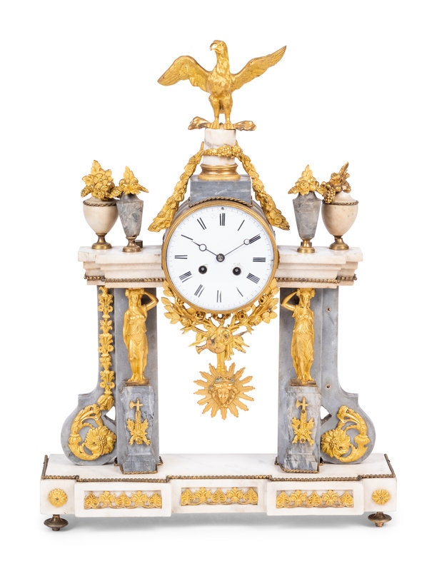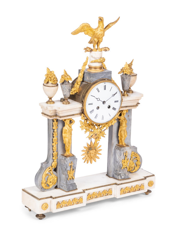 A Louis XVI Style Gilt-Bronze and Marble Mantel Clock