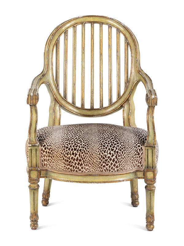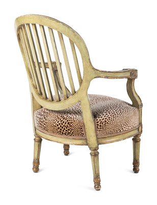 A Louis XVI Style Painted and Parcel-Gilt Fauteuil