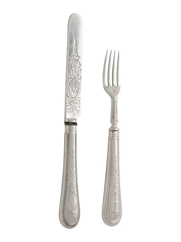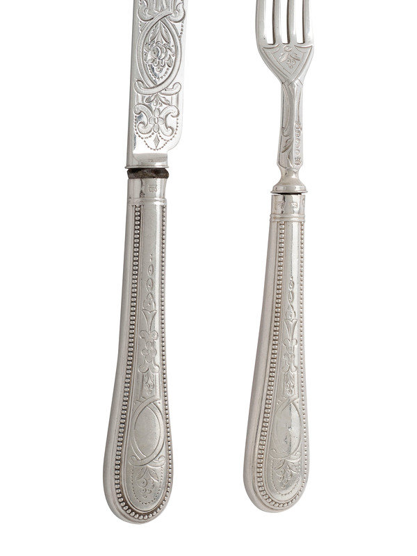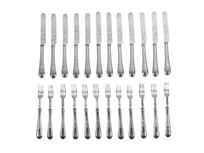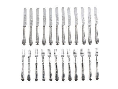 comprising twelve knives and twelve forks, each with full hallmarks.