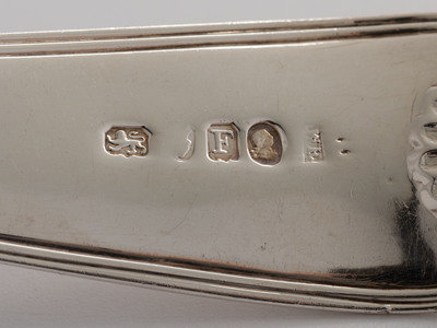each with handle engraving and hallmarks to reverse, some partially obscured.