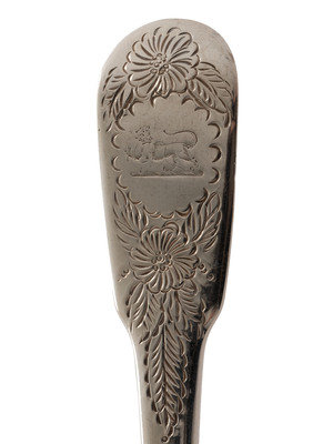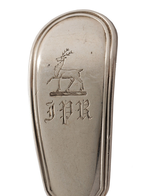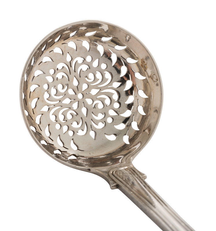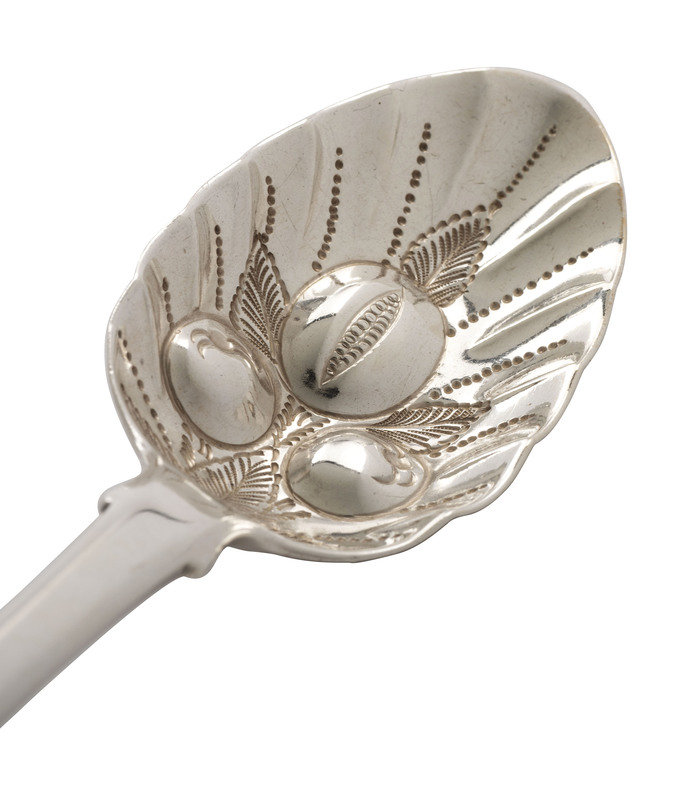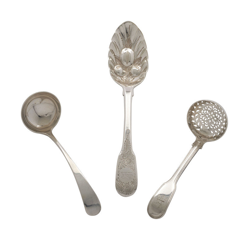 An English Silver Cranberry Spoon, Sauce Ladle and Slotted Ladle