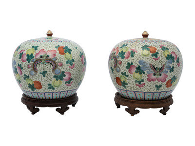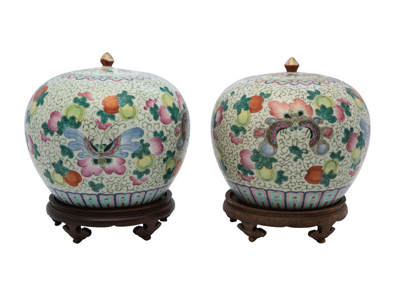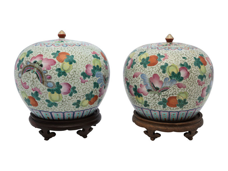 A Pair of Chinese Famille Rose Porcelain Ginger Jars