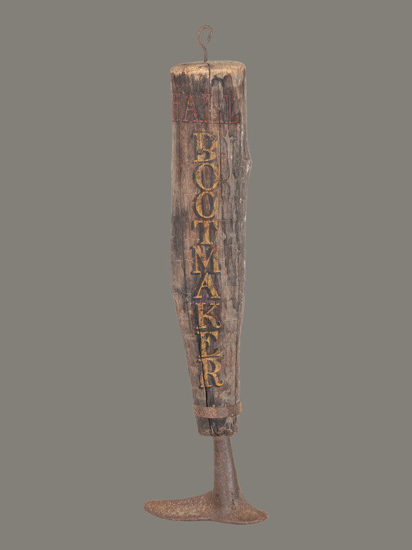 A Carved and Painted Wood and Iron Bootmaker Shop Sign