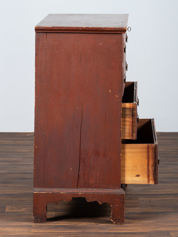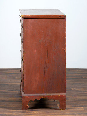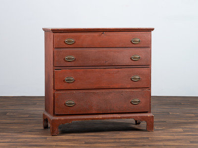 A Chippendale Red-Painted Pine Two Drawer Blanket Chest, or Mule Chest