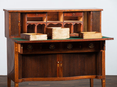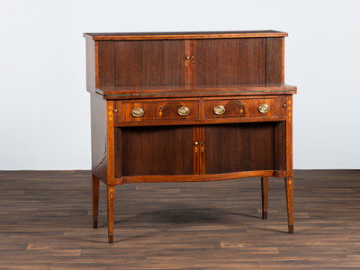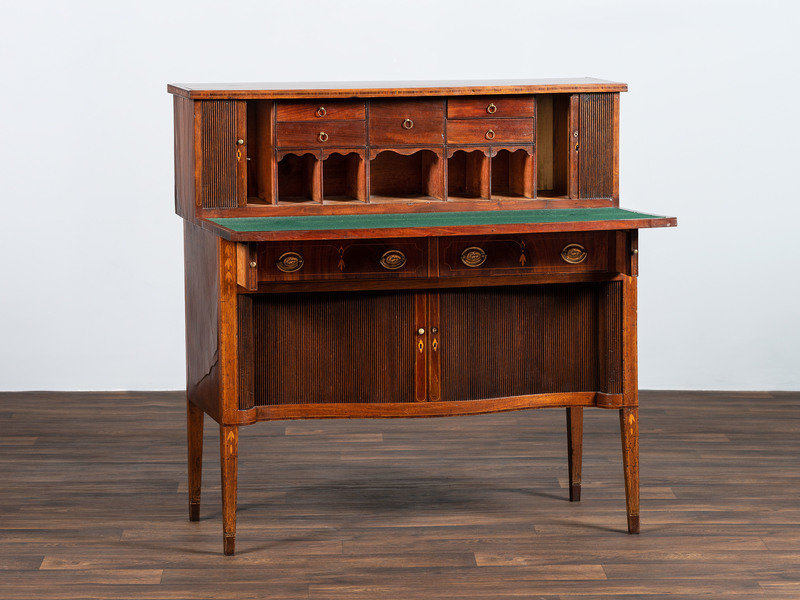 A Federal Mahogany and Marquetry Tambour Desk