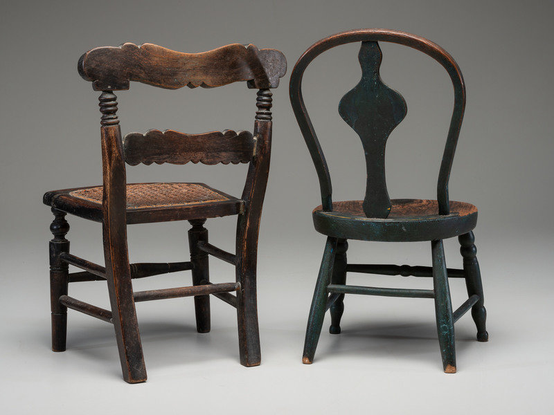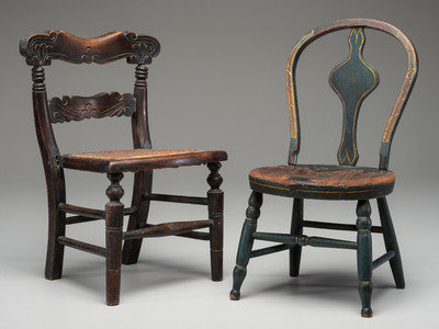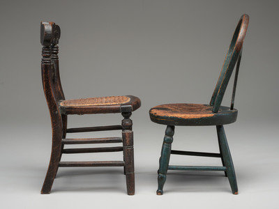 Two Paint Decorated Doll or Child's Chairs
