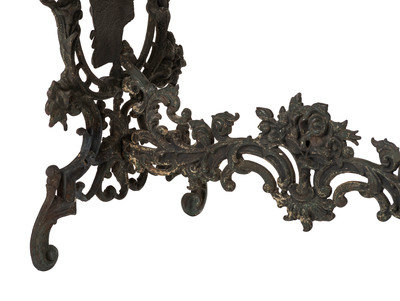 A Wrought Iron and Marble Top George Washington Garden Table