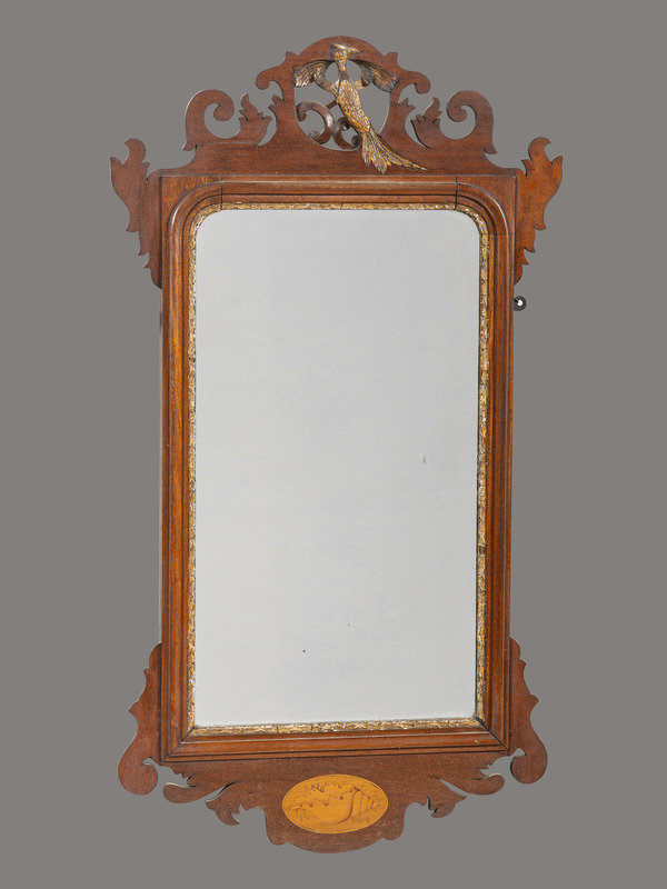 A George III Marquetry and Parcel Gilt Mahogany Mirror