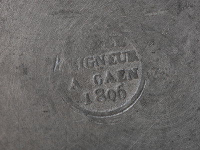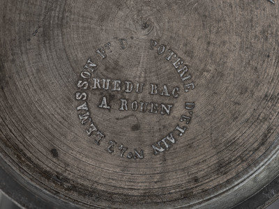 each with maker's mark to underside, including a demilitre by Le Seigneur, Caen; a double decilitre by A.D. et Cie; and demilitre by Poterie d'Étain, Rouen.