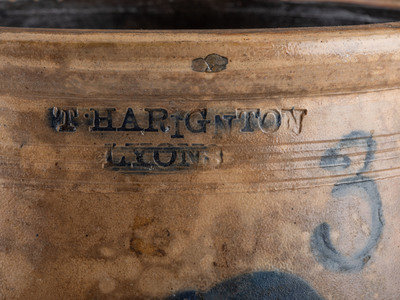 A Thompson Harrington Cobalt Decorated Three-Gallon Stoneware Crock