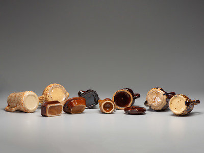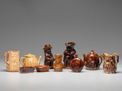comprising three Toby jugs, two teapots, two soap dishes, a flask and two pitchers.