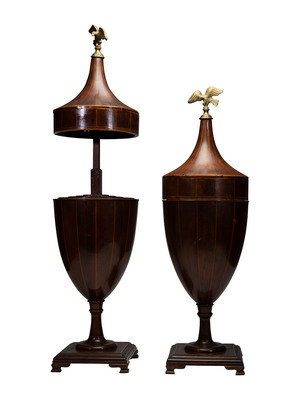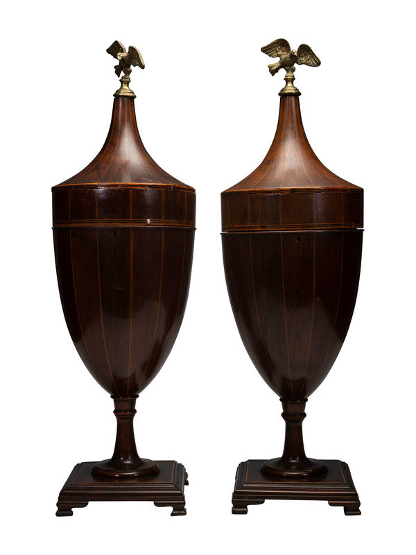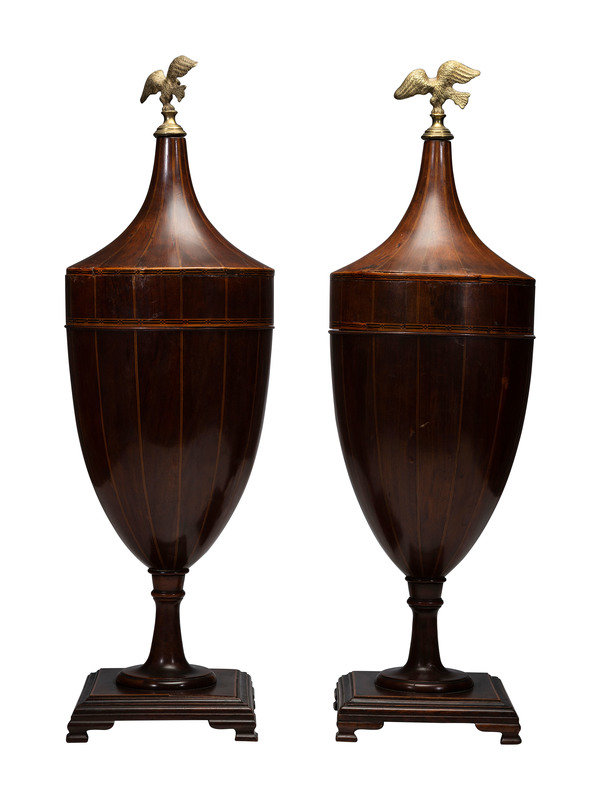 each with brass eagle finial and satinwood inlay.