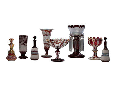 including a luster, three decanters, two vases, two compotes and a beaker.