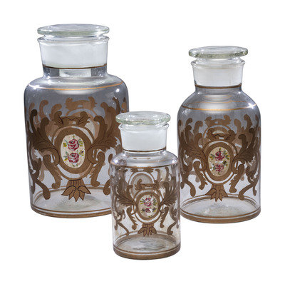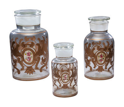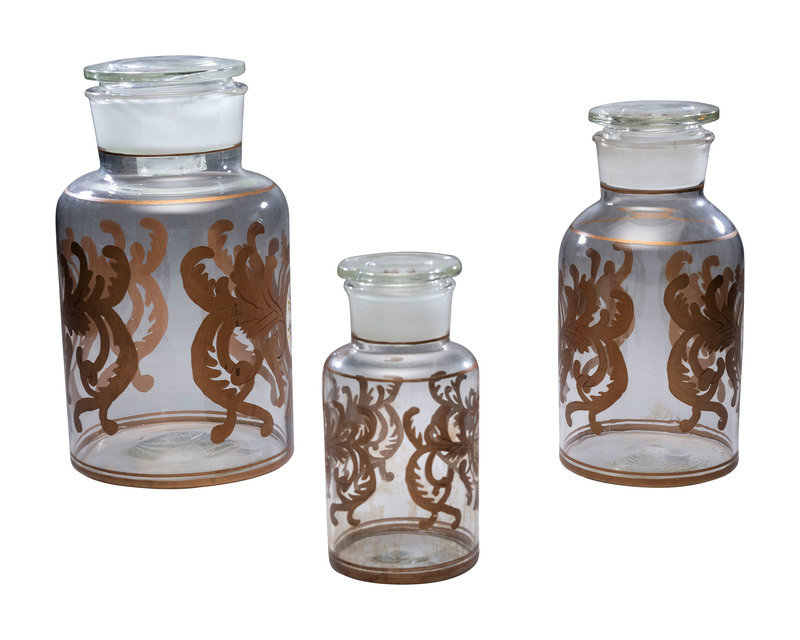 Three Graduated Paint and Gilt Decorated Glass Storage Jars