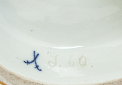 bearing double crossed swords in underglaze blue, with impressed numbers 44 and incised numbers J 60