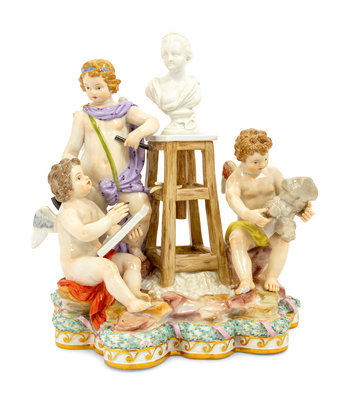 A Meissen Porcelain Figural Group of Cherubic Artists