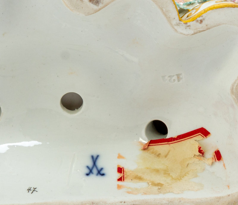 bearing double crossed swords in underglaze blue, with impressed numbers 121, inked number 47 and incised initials.