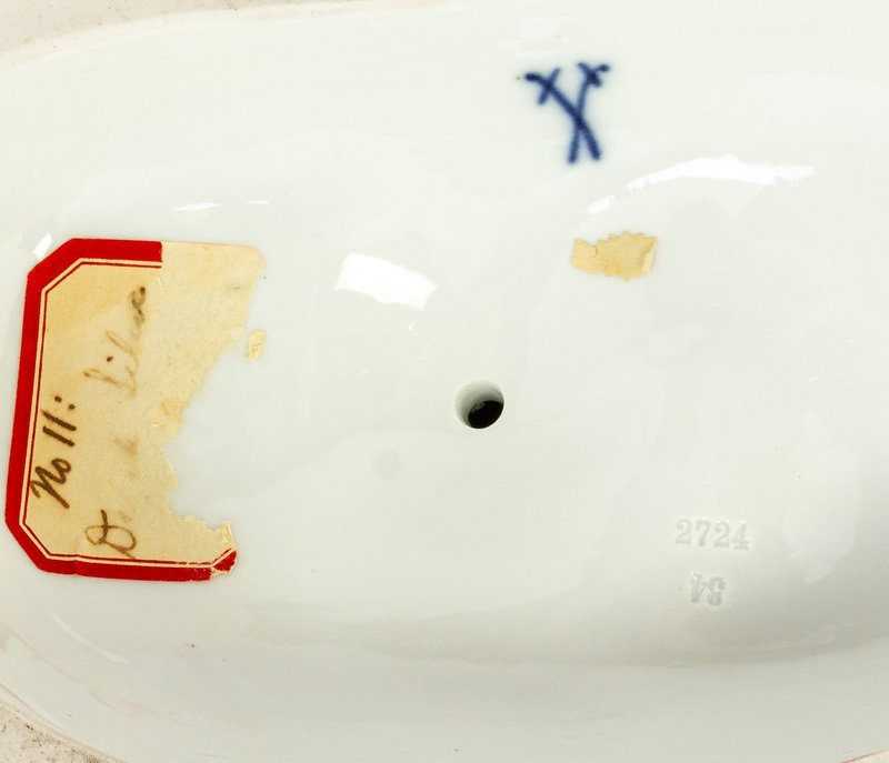 bearing double crossed swords in underglaze blue, with impressed numbers 2724 and 34 and inked number 3.