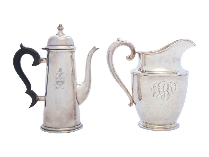 each marked, the coffee pot for Baldwin & Miller and the pitcher for Wallace.