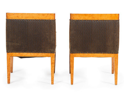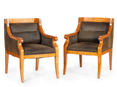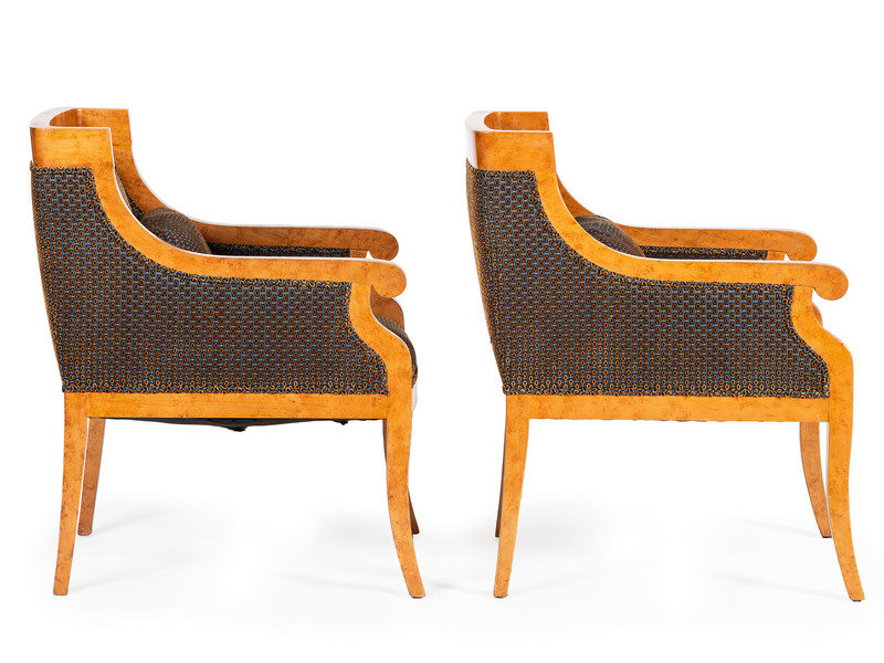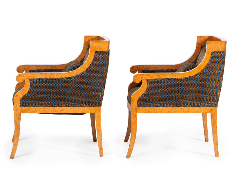 A Pair of Biedermeier Burlwood Bergeres