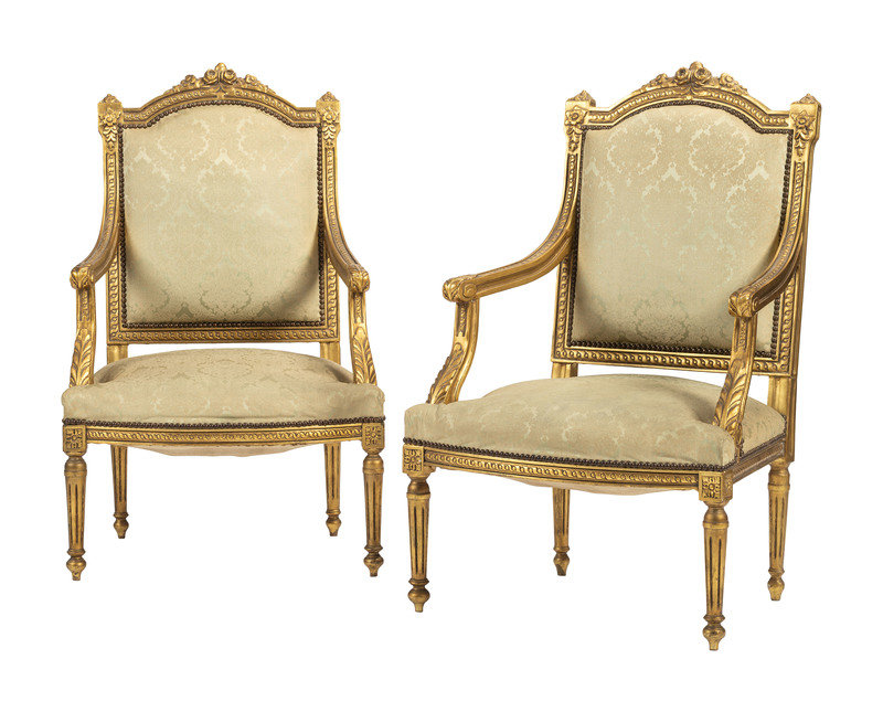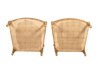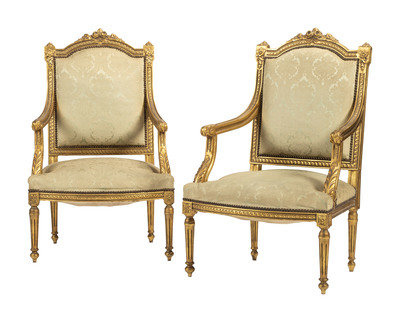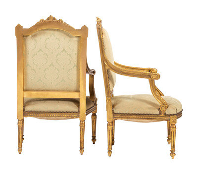 A Pair of Louis XVI-style Carved and Gilt Fauteuils
