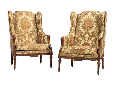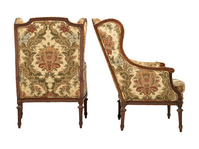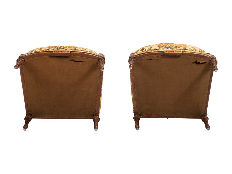 A Pair of French Louis XVI-style Walnut Bergeres