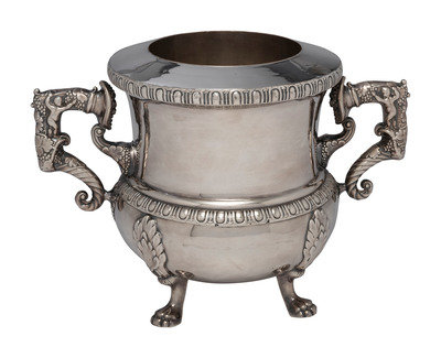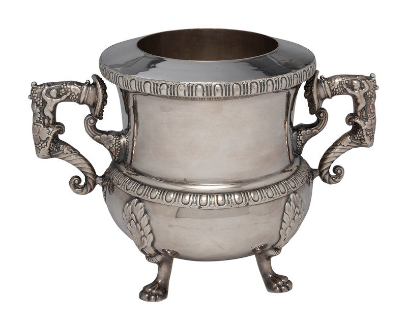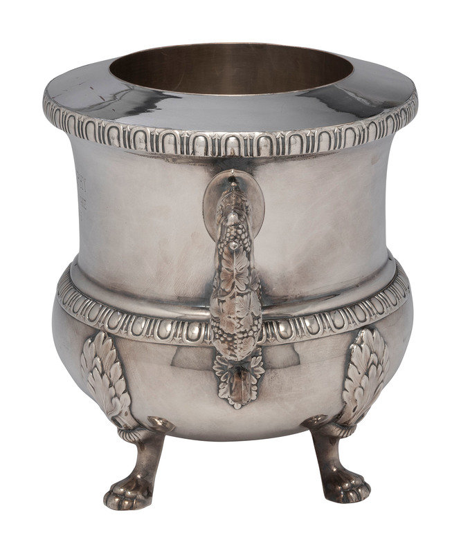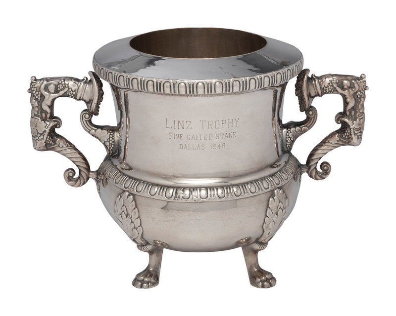 unmarked, with Bacchanalian decoration and trophy engraving reading Linz Trophy / Five Gaited Stake / Dallas 1948.