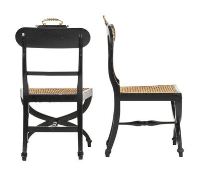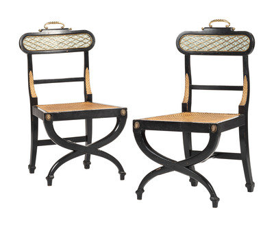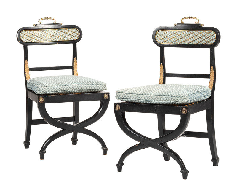 A Pair of Neoclassical Style Ebonized Curule Side Chairs