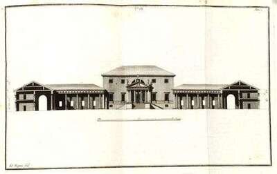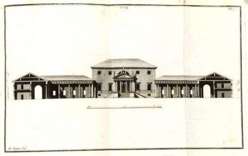 Palladio, Andrea. Le Fabriche e i Disegni di... Raccolti ed Illustrati da Ottavio Bertotti Scamozzi. Venice: G. Rossi, 1796-1797. 4to, contemp. mottled bds.; moderate wear. 2 portraits + 234 plates (on 233 sheets) of 235 plates - lacking plate 33 in vol. 3. Scattered light foxing, occasional internal soiling. Ex-library copy, ink stamp on 1 plate - no other markings.