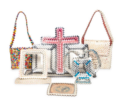 Six Prison Art Cigarette and Candy Package Frames and Purses