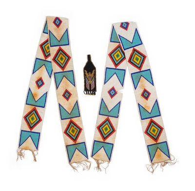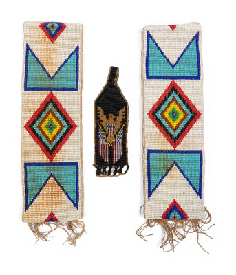 A Pair of Plains Loom-Beaded Strips and Bookmark