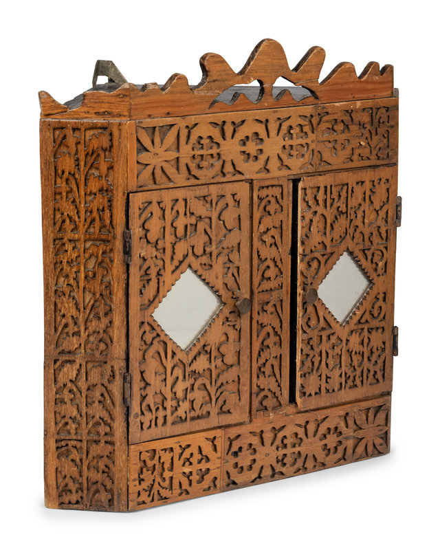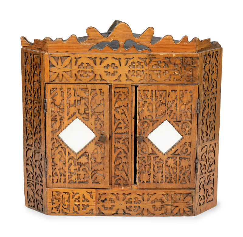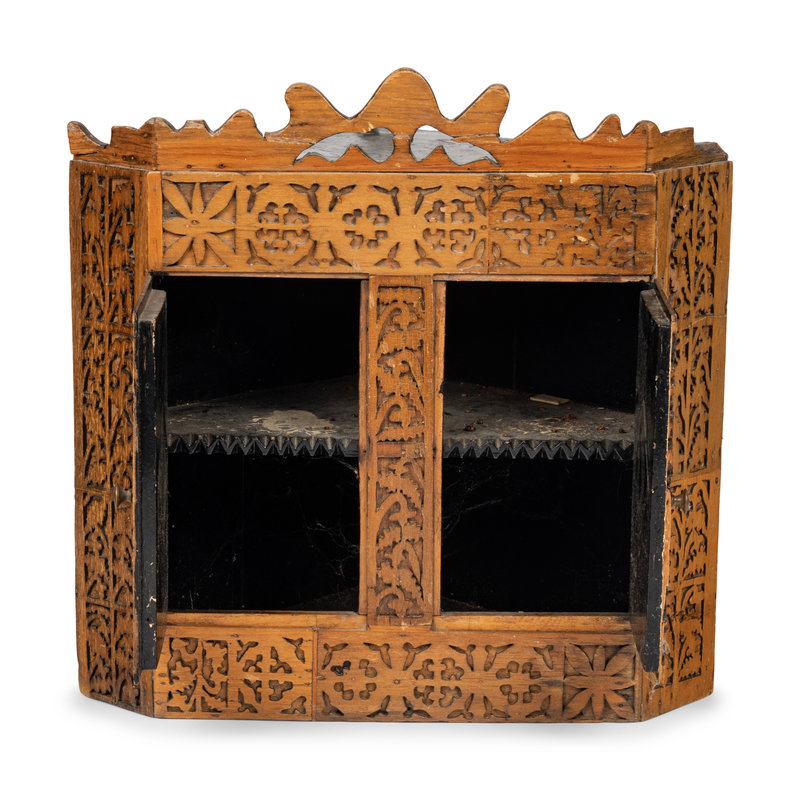 A Chip Carved Hanging Corner Cupboard
