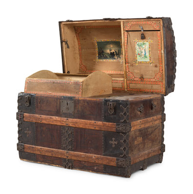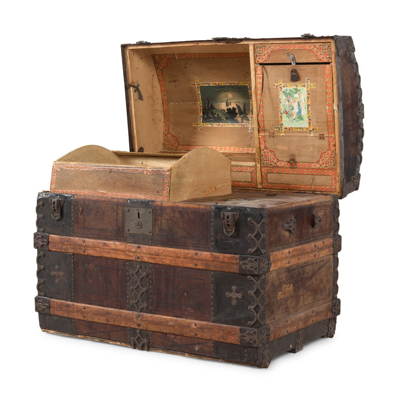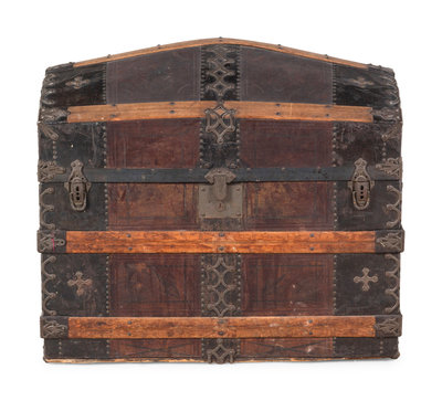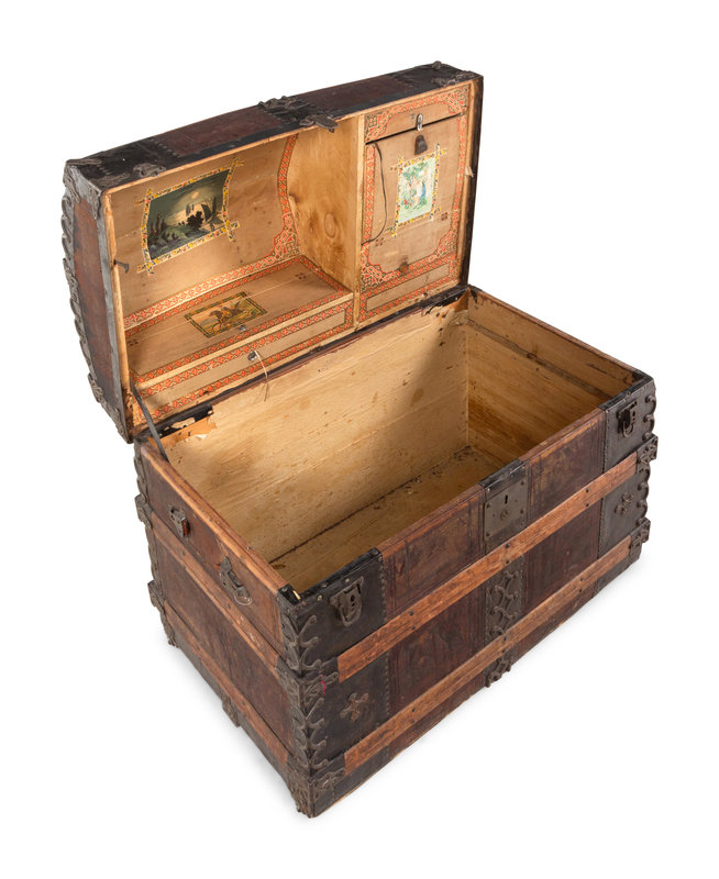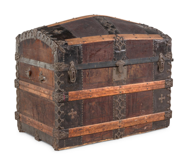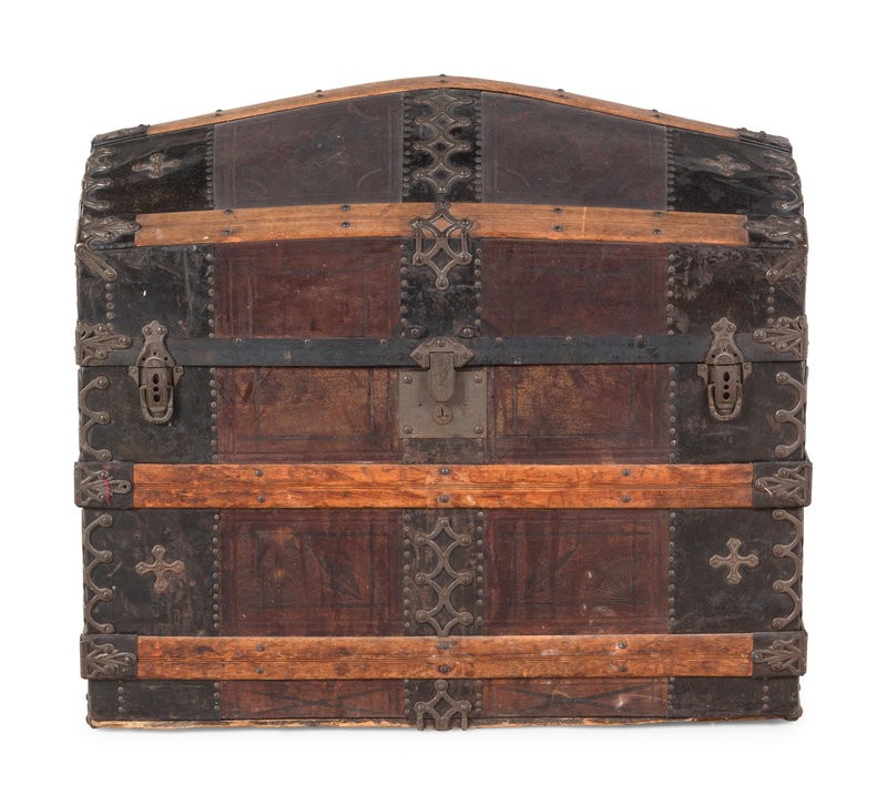 A Brass and Iron Mounted Wood Domed Top Blanket Chest