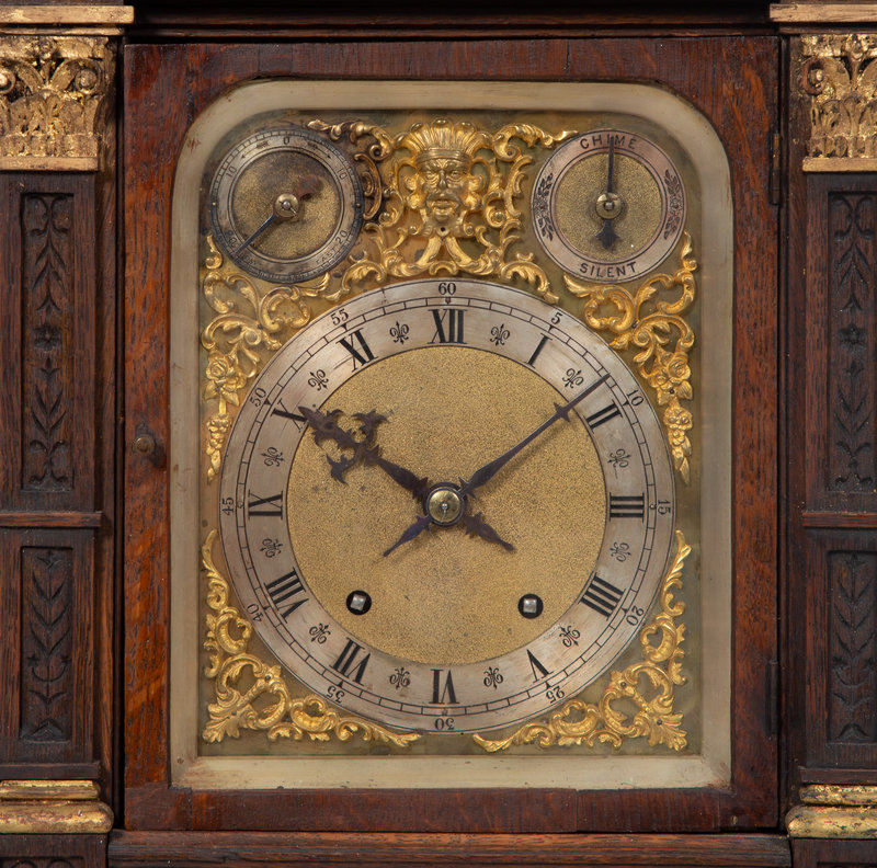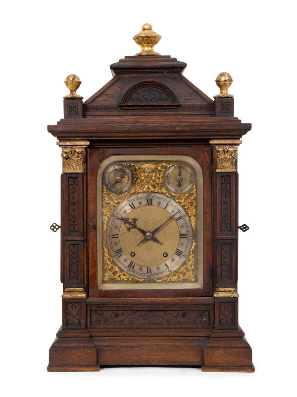 A Victorian Gilt Metal Mounted Oak Bracket Clock