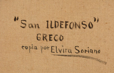 titled and inscribed San Ildefonso/ Greco/ copia por Elvira Soriano (on the reverse)