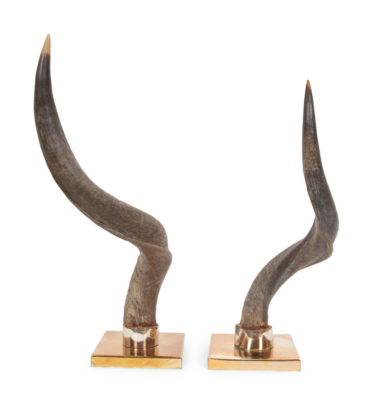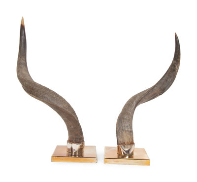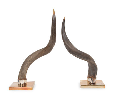 A Pair of Anthony Redmile Impala Horns Mounted on Bronzed Metal Bases