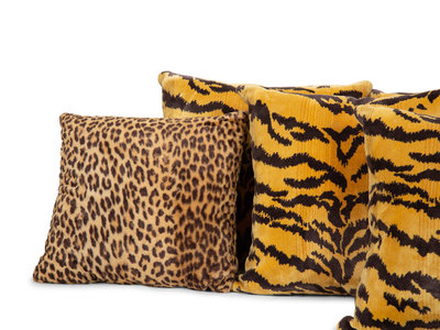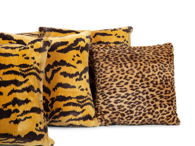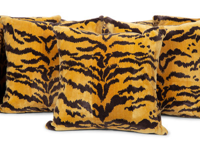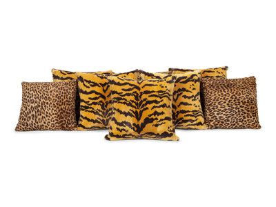Six Scalamandré Silk Velvet Tigre Pillows and Two Cheetah Design Pillows
