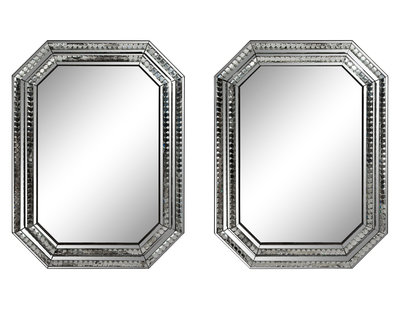 A Pair of Octagonal Faceted Glass Framed Mirrors
