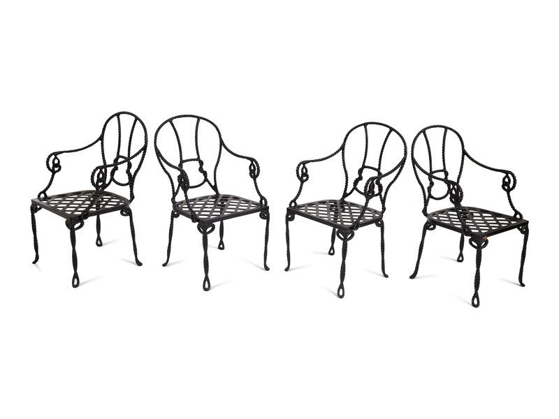 Four Miles Redd Style Painted Metal Bermuda Rope Chairs