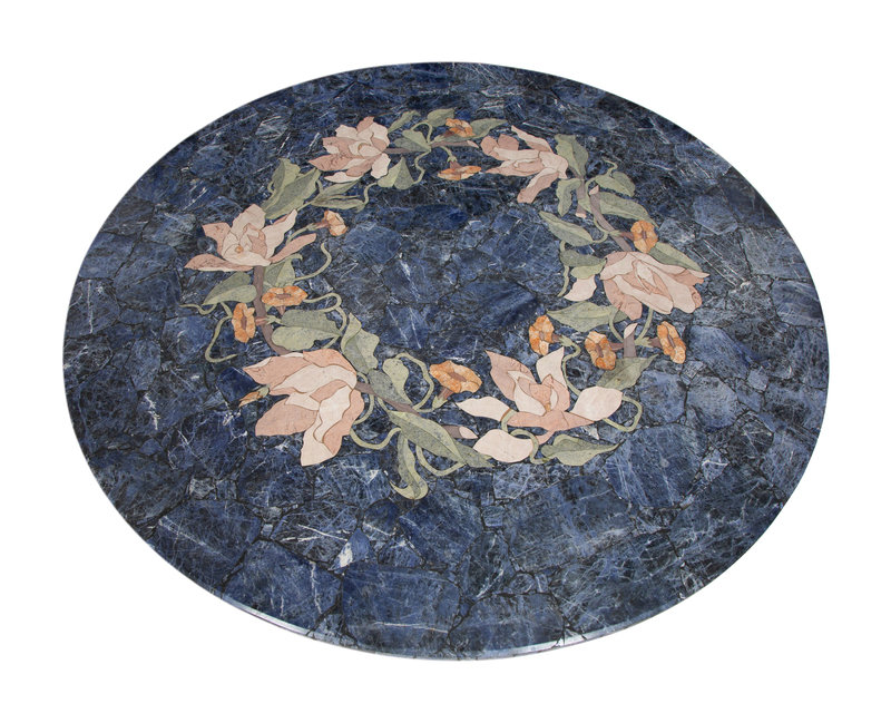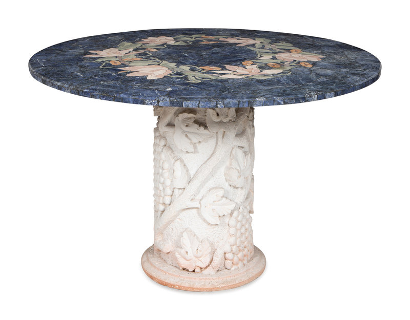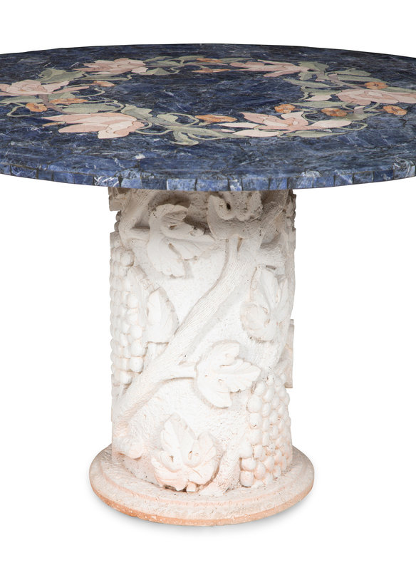 A Cast Stone and Pietra Dura Circular Dining Table