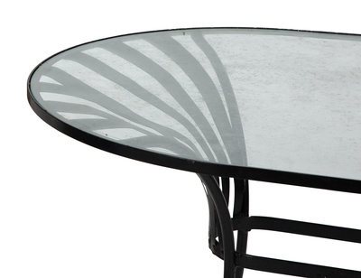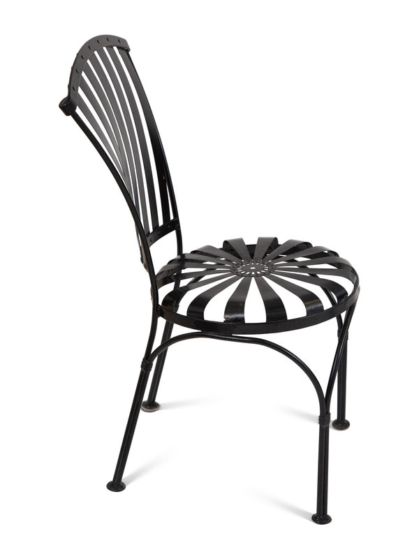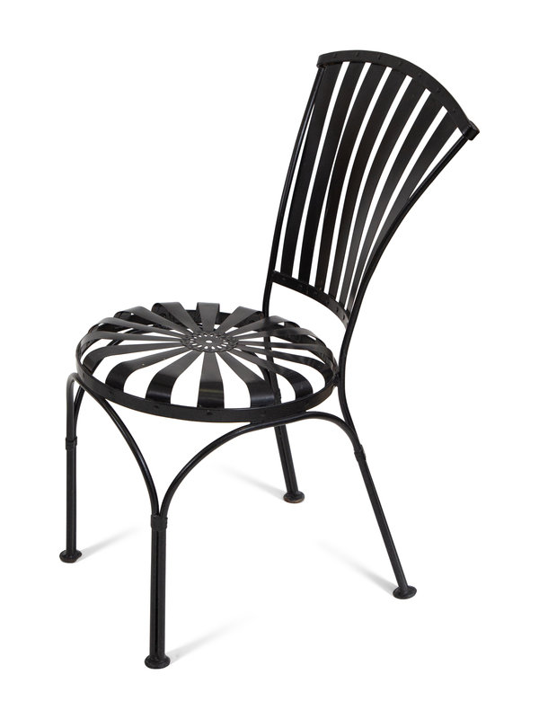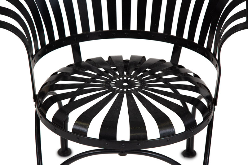 A Spring Steel Garden Table and Eight Chairs by Francois Carre