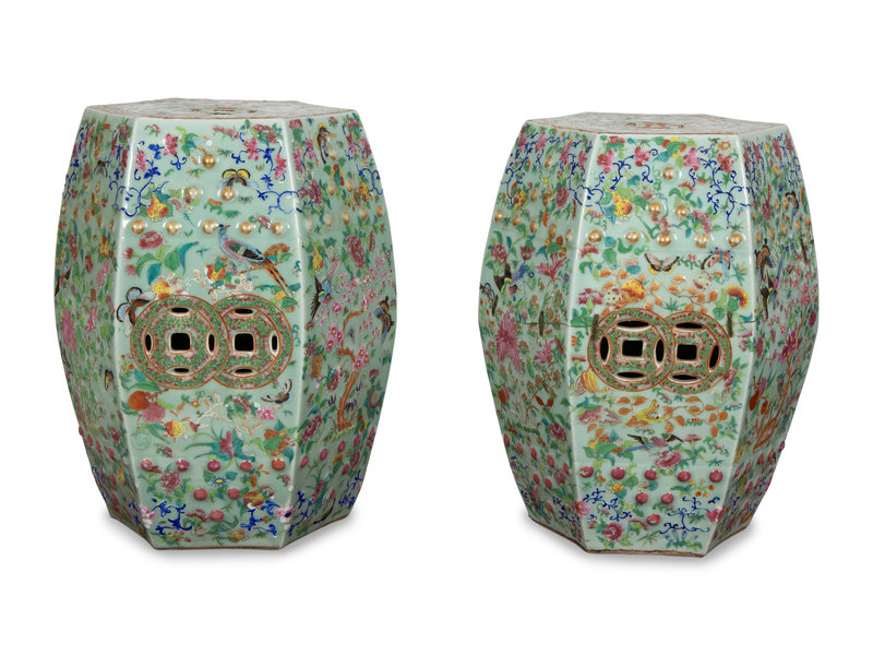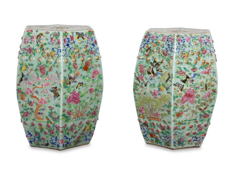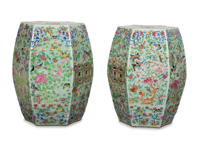 A Pair of Chinese Enameled Porcelain Garden Seats