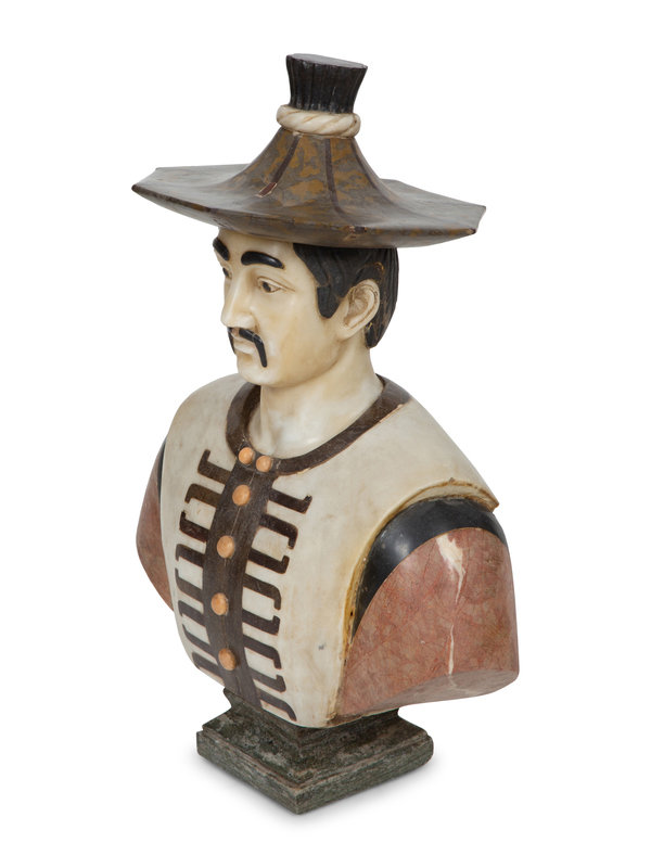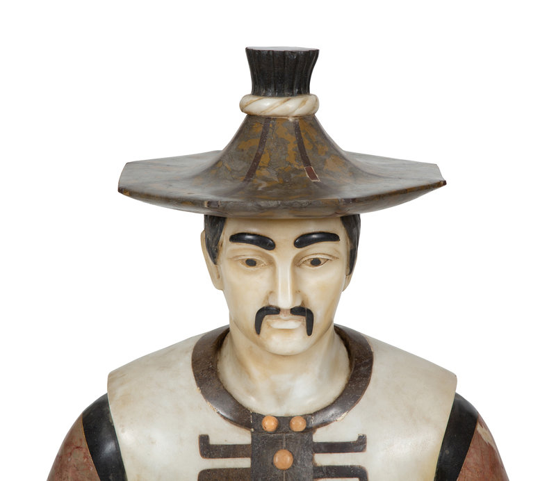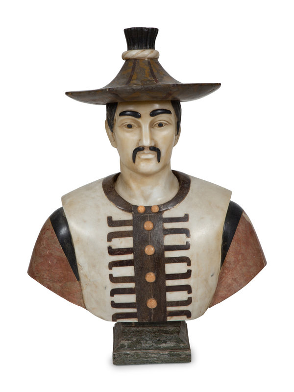 An Italian Specimen Marble Bust of a Man on Marble Pedestal