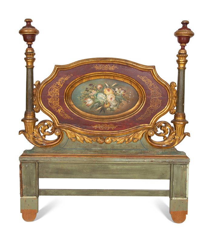 An Italian Rococo Style Painted and Parcel Gilt Headboard