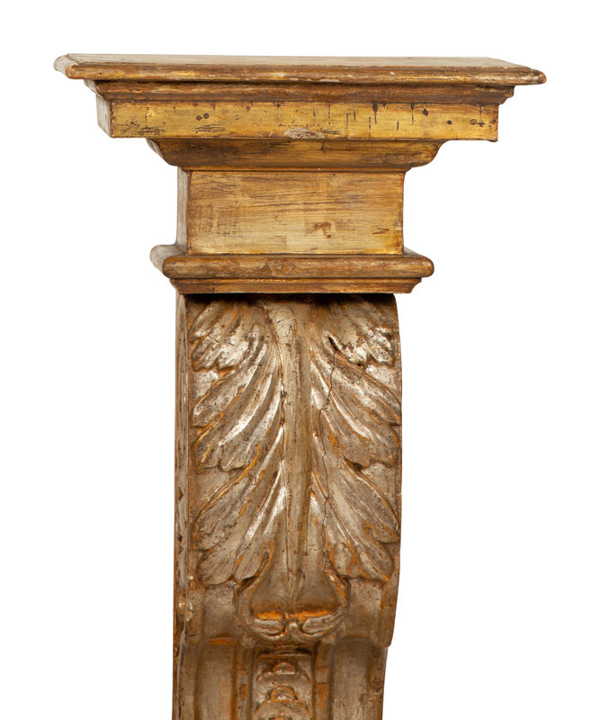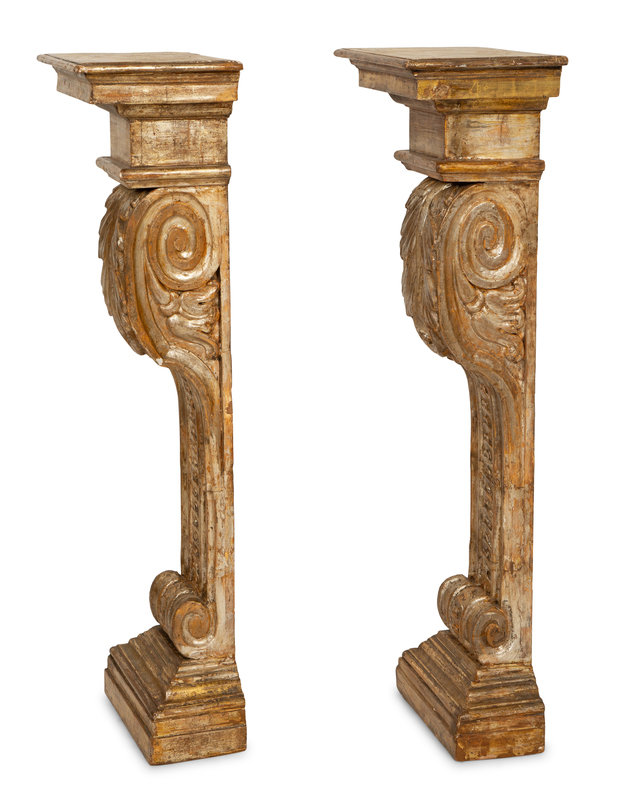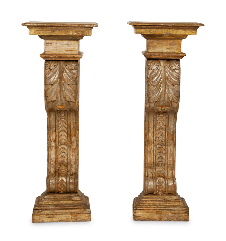 A Pair of Italian Silvered and Giltwood Pilaster Pedestals