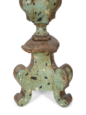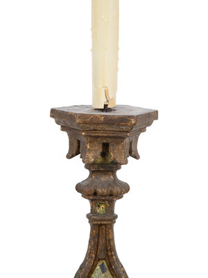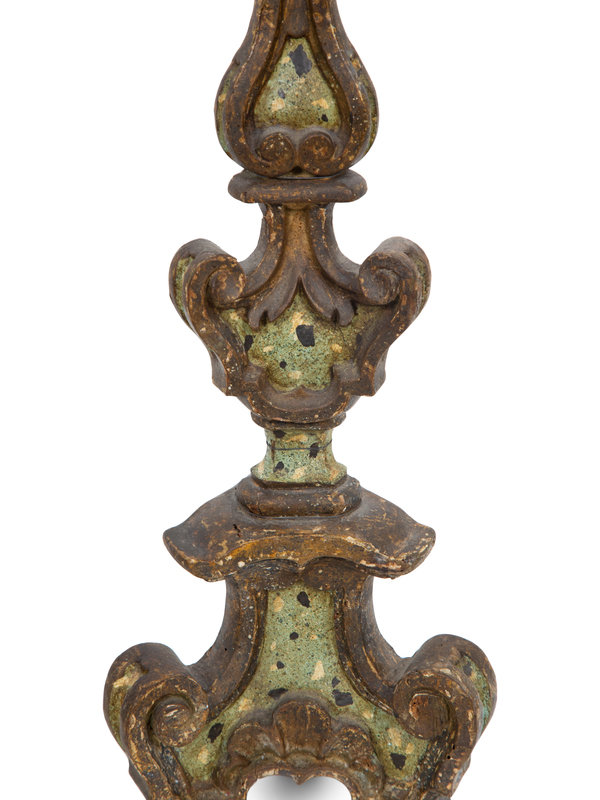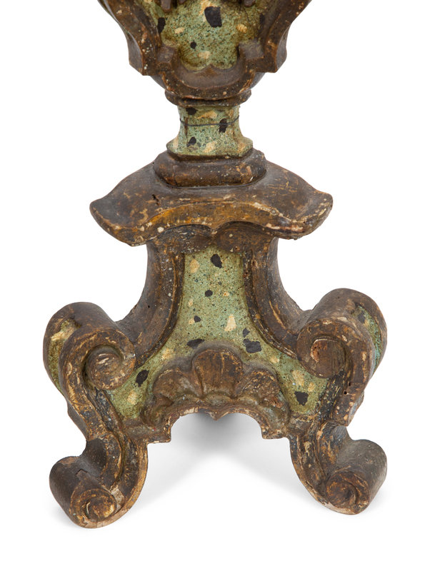 A Pair of Italian Painted and Parcel Gilt Pricket Candlesticks